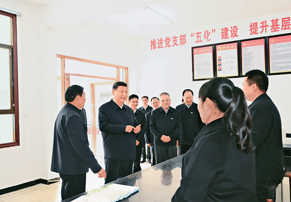 2024年3月18日至21日,中共中央总书记、国家主席、中央军委主席习近平在湖南考察。这是19日下午,习近平在常德市鼎城区谢家铺镇港中坪村党群服务中心了解当地为基层减负、提升基层治理效能等情况。新华社记者 燕雁/摄